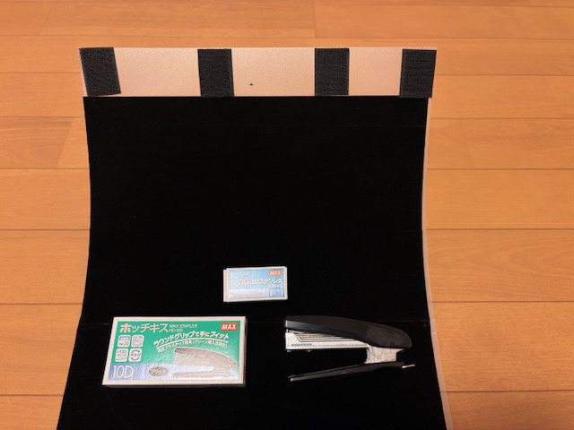 ホッチキス針は錆びてこないようにステンレス針にしました。