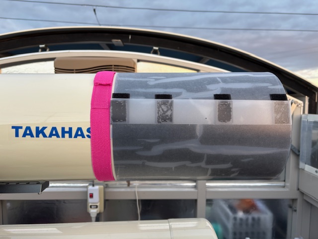 μ180Cでは主に自宅で月の観望を行っています。観望自体は1時間以上しないので今のところフードの必要性を感じてはいないのですが、野外に持ち出したり、特別湿度の高い夜に見たりすることを考えて、フードを作ろうと思いました。望遠鏡販売店ではμ180C対応の巻き付けフードのようなものがあるようです。でも以前μ250用のフードを自作した経験があるので、同じように安く作れるだろうという思いがありました。